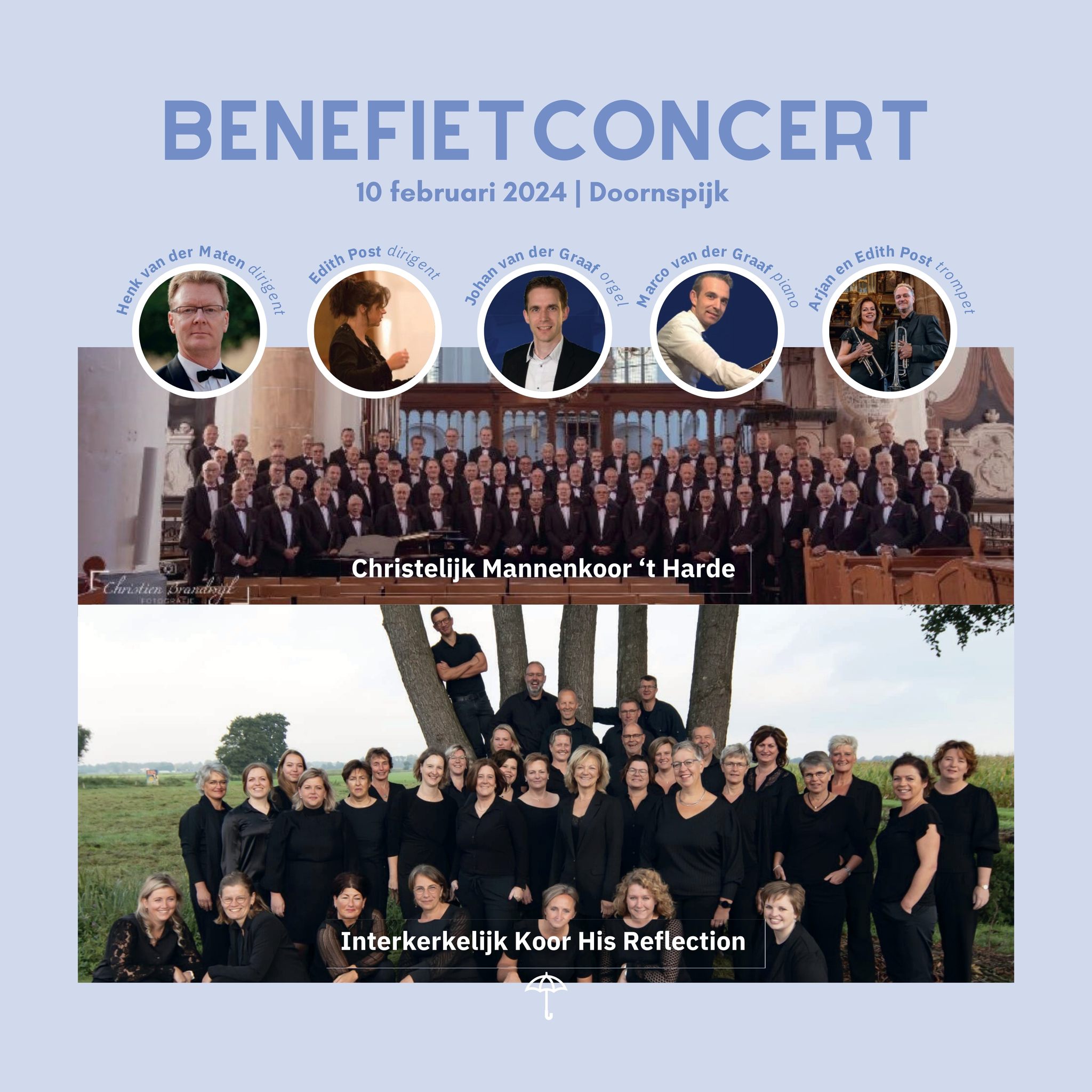 Het Christelijk Mannenkoor ’t Harde e.o. staat onder leiding van Henk van der Maten en Interkerkelijk Koor ‘His reflection’ o.l.v. Edith Post.